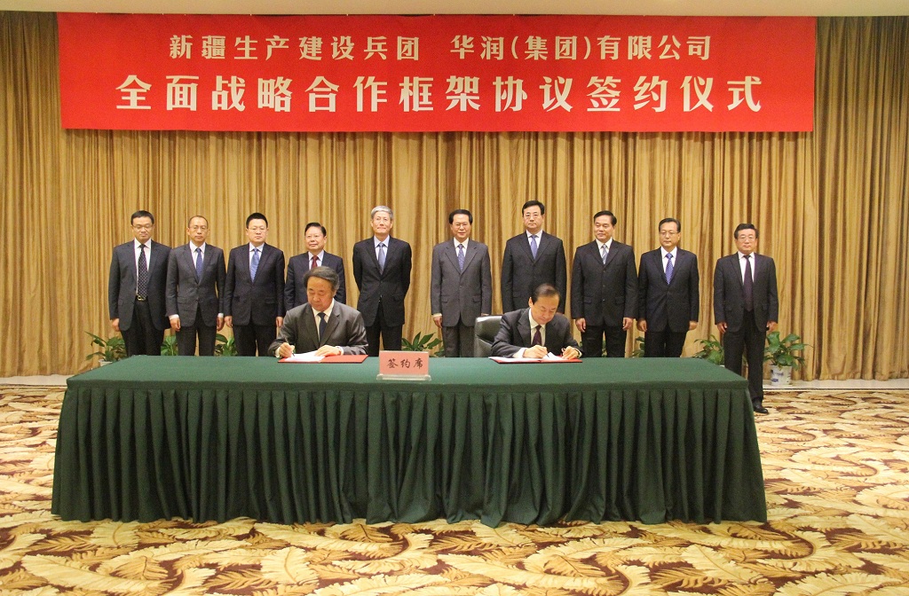 At the ceremony for the execution of the Comprehensive Strategic Cooperation Framework Agreement, Political Commissar Che and Chairman Fu delivered their speeches, hoping that the cooperation will attain fruitful results. Commander Liu and General Manager Qiao signed the agreement on behalf of XPCC and CR. Following the agreement, the two parties will exert their resources advantages of XPCC and the industrial management and capital advantages of CR to explore possibilities of capital and industrial cooperation in consumer goods, energy and medicine sectors and promote comprehensive cooperation at all levels in terms of talents, technology and capital, with the view of promoting the prosperity and development of the Region.