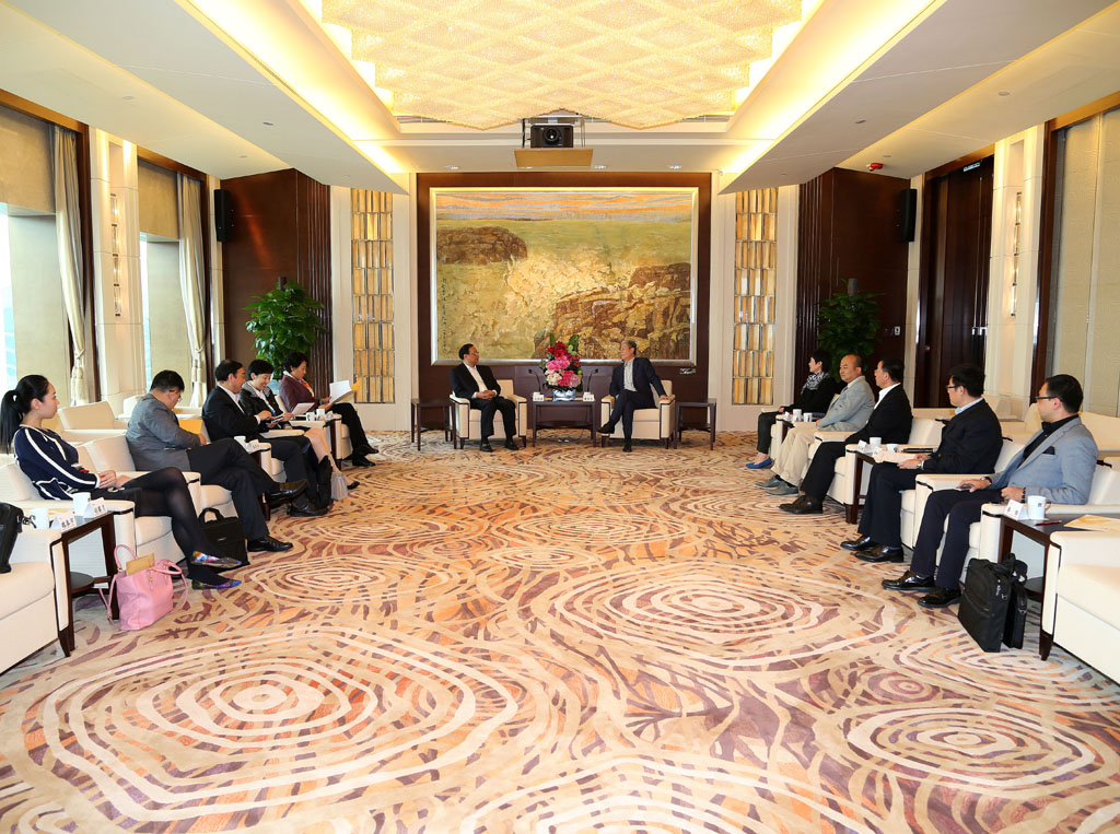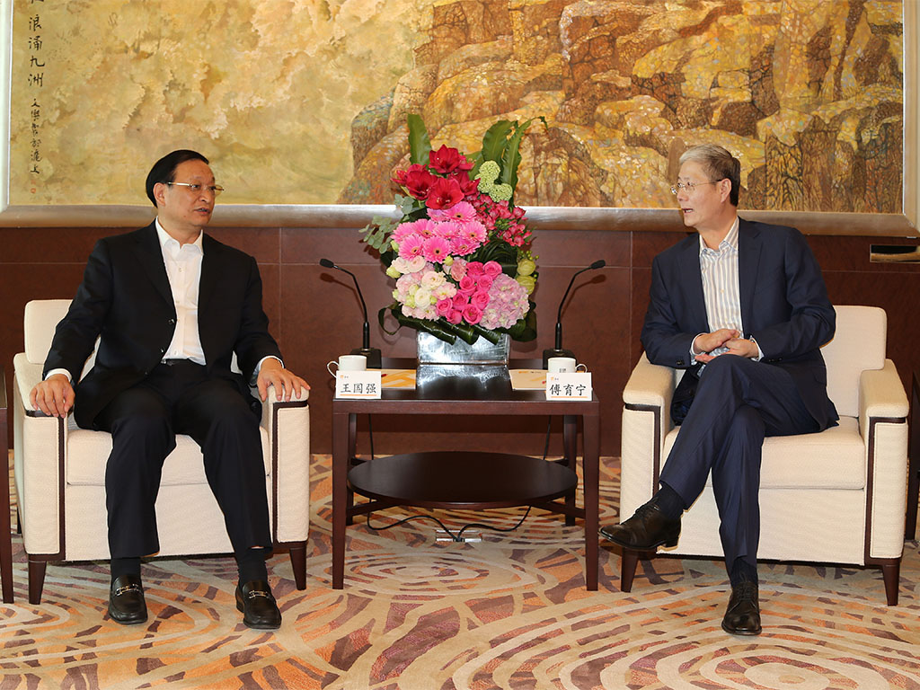 Chairman Fu Yuning met with Wang Guoqiang, visiting Deputy Director of National Health and Family Planning Commission (NHFPC) and Commissioner of the State Administration of Traditional Chinese Medicine (SATCM), and his delegation on the afternoon of April 12.