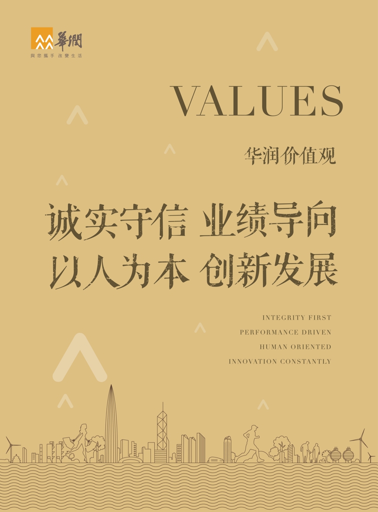 With a view to instilling the China Resources corporate culture system in all staff and allowing it to play an important role in driving corporate development, the Group has distributed a series of “cultural posters”, stepped up relevant internal promotion and, more importantly, called on all business units to prioritize the implementation of the “Five Integrations” to ensure effective establishment of the corporate culture during the 13th Five-year Plan period, so that the corporate culture can be seamlessly incorporated into business operations, corporate regulations and codes of conduct, social responsibilities and branding activities. Such incorporation will ensure the consistency between our vision and our actions.