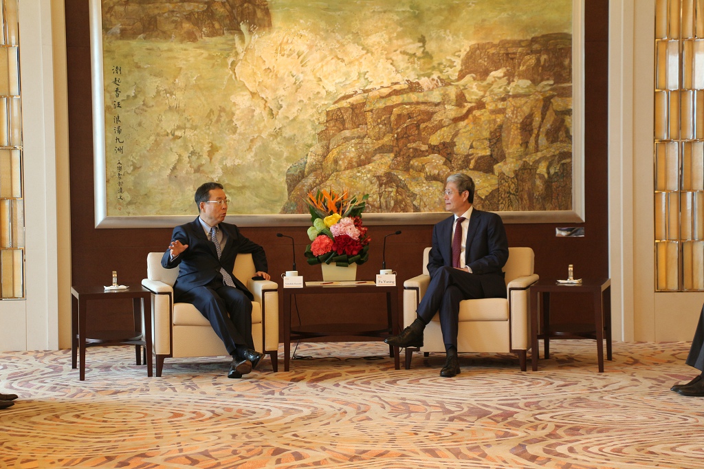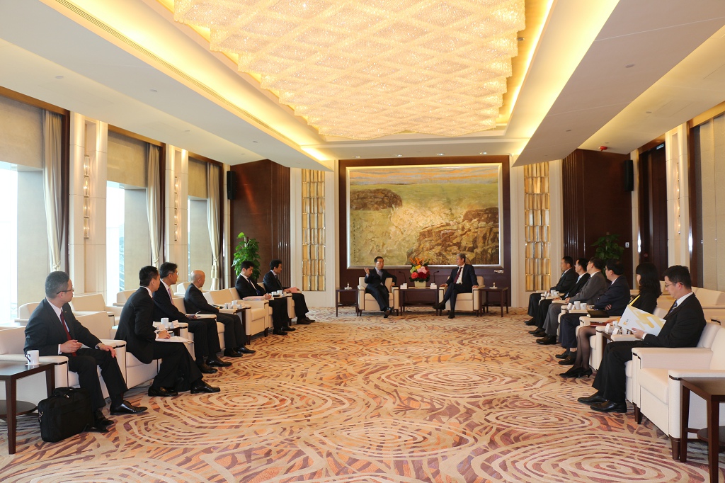 Group Chairman Fu Yuning met with Nobuhide Hayashi, President of Japan's Mizuho Bank and other delegates in Hong Kong on the morning of May 4. The two parties exchanged views on the current economic situations in Japan and China and on how to further strengthen cooperation between banks and enterprises.
