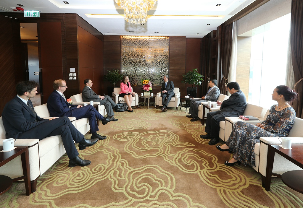 On the afternoon of 17 August, Ms. Jan Adams, Australian Ambassador to China, accompanied by Mr. Paul Tighe, Consul General of Australia to Hong Kong, Mr. Sam Guthrie, Deputy Consul General, and Mr. Brad Peppinck, Consul, visited China Resources Group headquarters in Hong Kong. Chairman Fu met with the Ambassador and the honorable guests, and friendly talks were held between the two parties. Opinions were exchanged regarding the future of economic and trade ties between China and Australia, China’s prospect for macroeconomic development, China’s direct foreign investment, China Resources’ investment projects in Australia and the direction of its future investment.