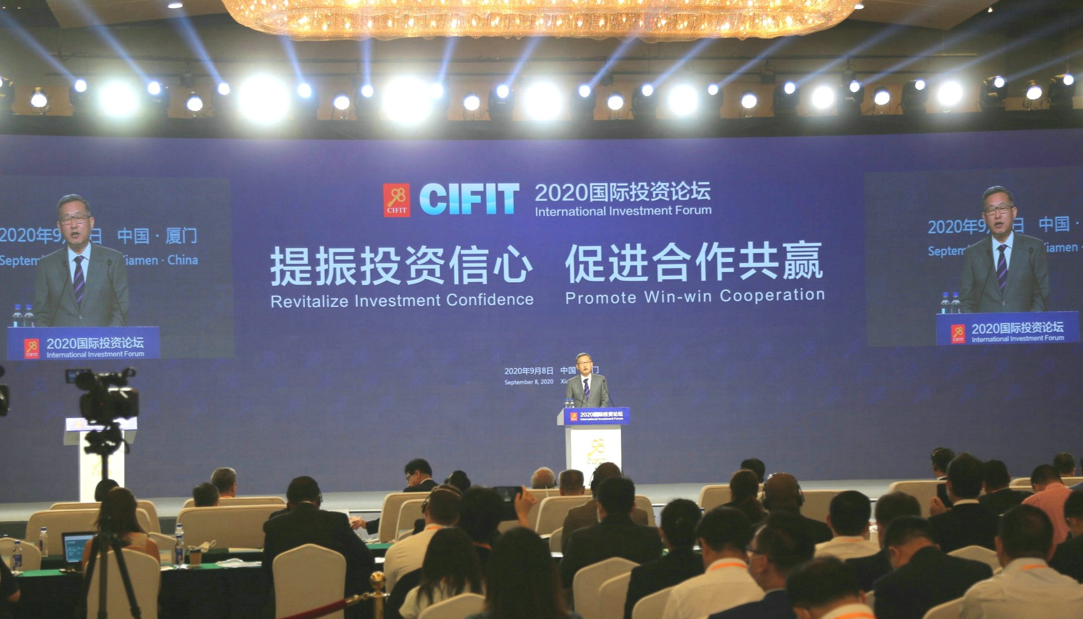 On the morning of 8 September 2020, the 2020 Xiamen International Fair for Investment and Trade Fair and Silk Road Investment Conference ("Xiamen Fair"), with the theme of "boost investment confidence and promote win-win collaboration", was officially launched at Xiamen International Convention and Exhibition Center. Wang Xiangming, Chairman of China Resources Group (“CR”), attended and addressed the launch ceremony of the "Cloud Investment and Trade Fair" and The Keynote Conference of Investment International Forum 2020.
