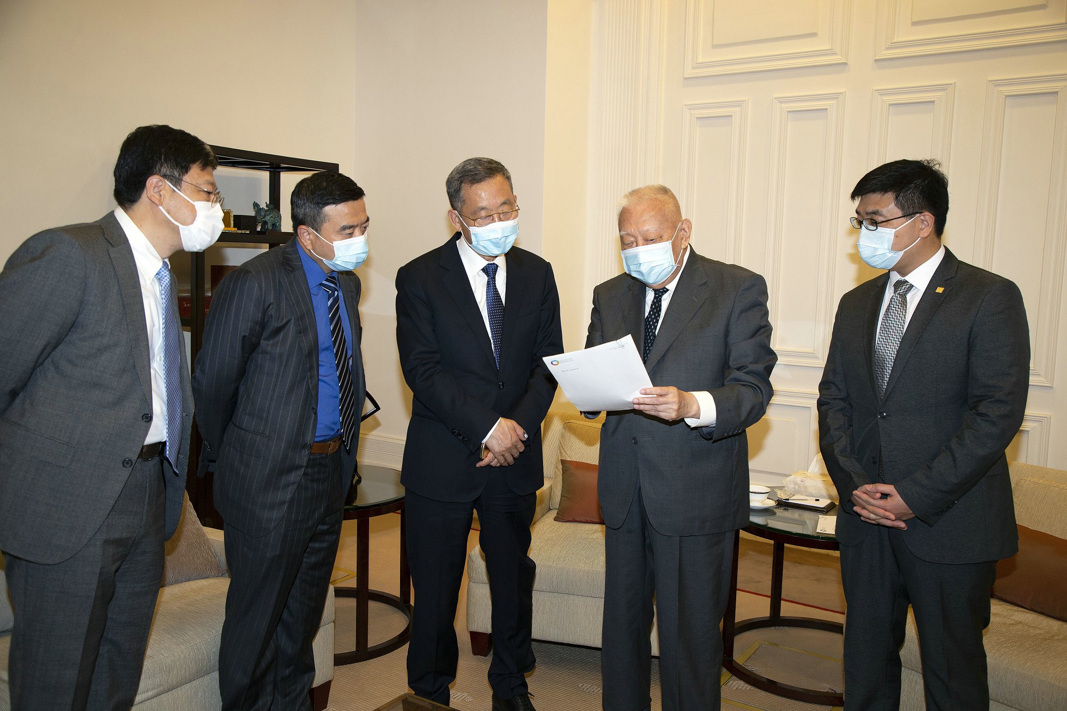 China Resources Group (CR) Chairman Wang Xiangming visited the Vice Chairmen of the National Committee of the Chinese People's Political Consultative Conference (CPPCC) Mr Tung Chee Hwa and Mr CY Leung, and Acting Commissioner of the Office of the Special Commissioner of the Ministry of Foreign Affairs of the People’s Republic of China (PRC) in the Hong Kong Special Administrative Region (HKSAR) Mr Yang Yirui during 25 February-1 March 2021 in Hong Kong.