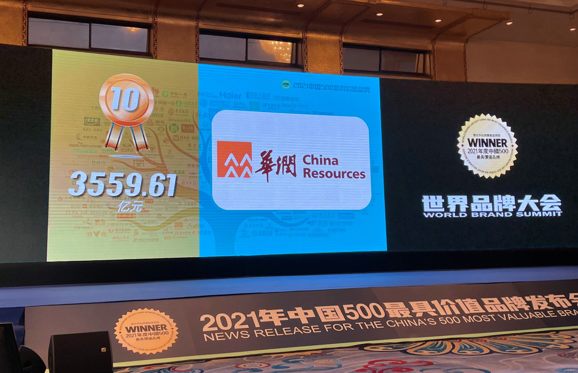 On 22 June, the "2021 (18th) World Brand Conference and 2021 (18th) China’s 500 Most Valuable Brands Conference" hosted by World Brand Lab was held in Beijing. China Resources Group (“CR”) ranked 10th in China's 500 Most Valuable Brands with a brand value of RMB355.96 billion as announced in the conference.