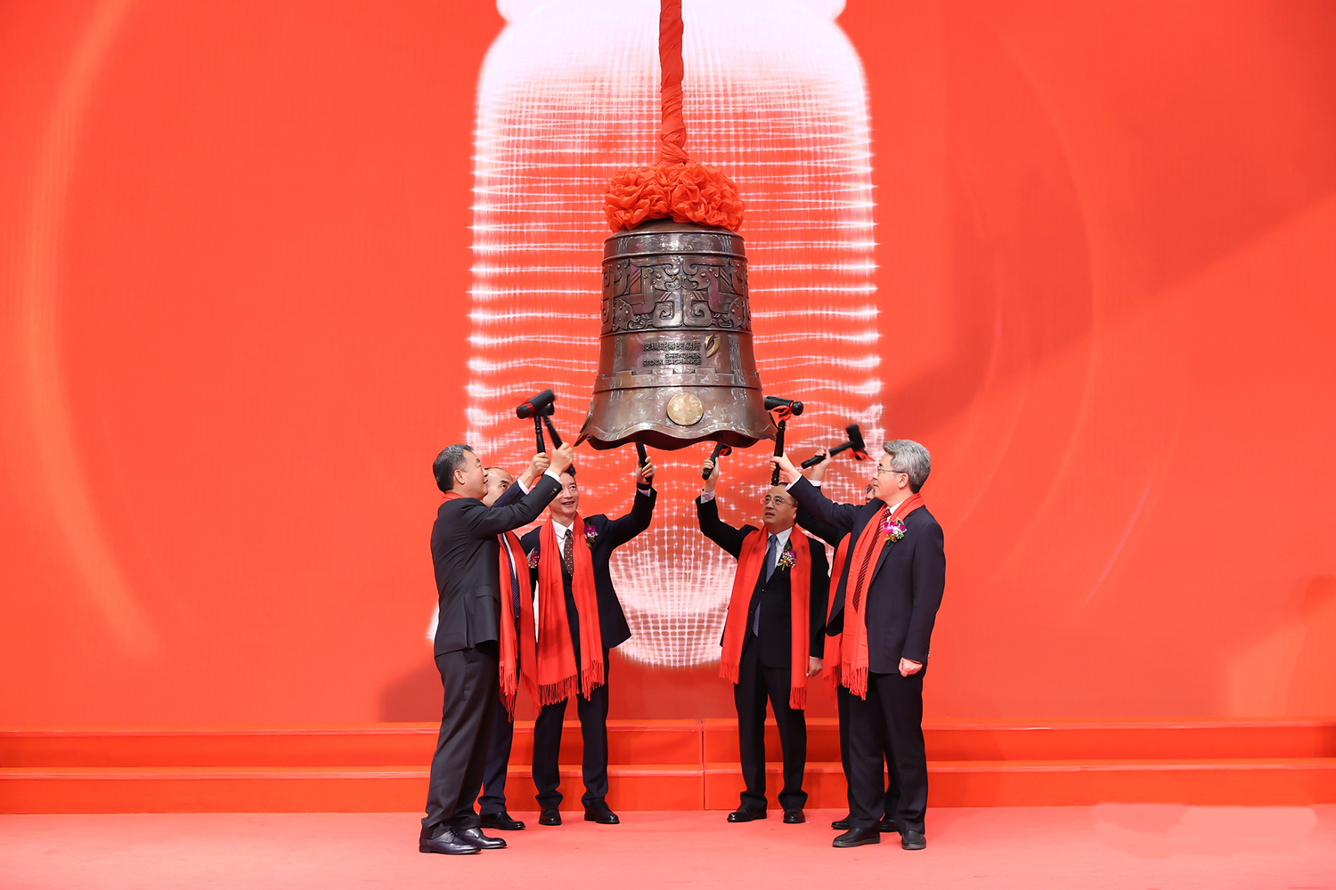 Wang Xiangming, Chairman of the Group, Li Fuli, Vice General Manager and Chief Financial Officer of the Group, Chen Xiaojun, Vice General Manager of the Group and Chairman of CR Chem-Mat, Liang Yibo, Vice Secretary of Changzhou Municipal Committee, Liu Naisheng, Director of Investment Banking Management Committee of China Securities Co., Ltd., and the person in charge of CR Chem-Mat jointly rang the bell to announce the official opening of CR Chem-Mat.