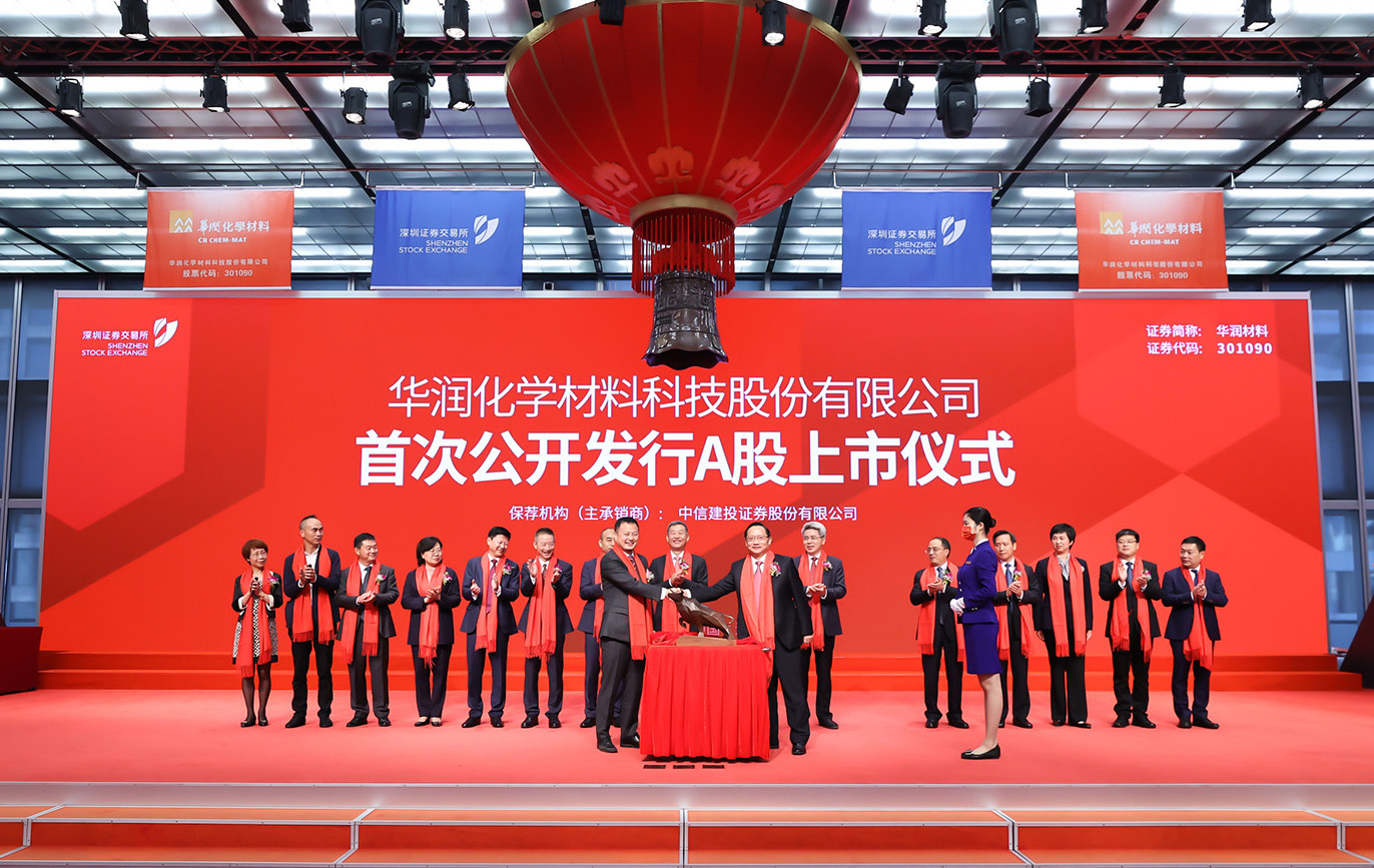 On October 26, CR Chemical Materials Technology Inc. (stock code: 301090, stock abbreviation: CR Chem-Mat) held the listing ceremony for initial public offering of A shares on the Shenzhen Stock Exchange, marking its official access to the capital market.