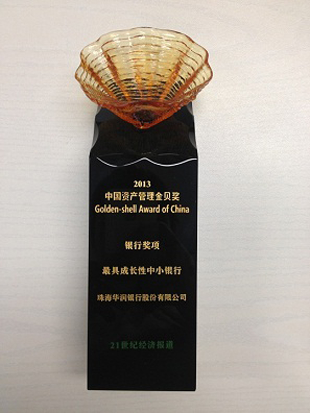 On June 26, at the “21st Century Asset Management Annual Conference and the 6th Golden-Shell Asset Management Awards Ceremony in 2013” organized by the 21st Century Business Herald, CR Bank was awarded the title “Medium and Small Bank with Greatest Growth Potentials in 2013”.