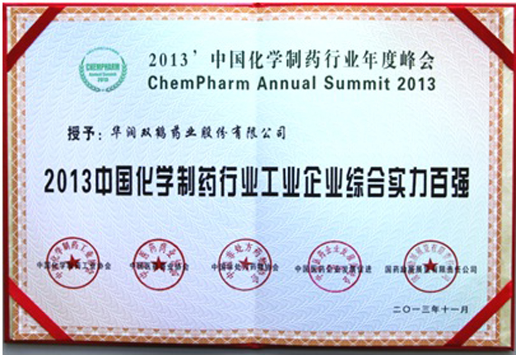 The annual summit of China Pharmaceutical Industry, co-hosted by China Pharmaceutical Industry Association, China Association of Pharmaceutical Commerce, China Nonprescription Medicines Association and China Pharmaceutical Enterprise Development Association, is currently the most inclusive platform in the chemical and pharmaceutical industry of China. The summit, featuring the theme of "Quality, Integrity, Brand" is aimed to promote the brand development in the industry, enhance the enterprise's awareness of the product quality control and the performance of corporate social responsibilities, with the view of promoting the healthy and robust development of enterprises in the context of market competition. The titles of honor show the public recognition of the long-term efforts of CR Double Crane in terms of quality and safety of medicine.