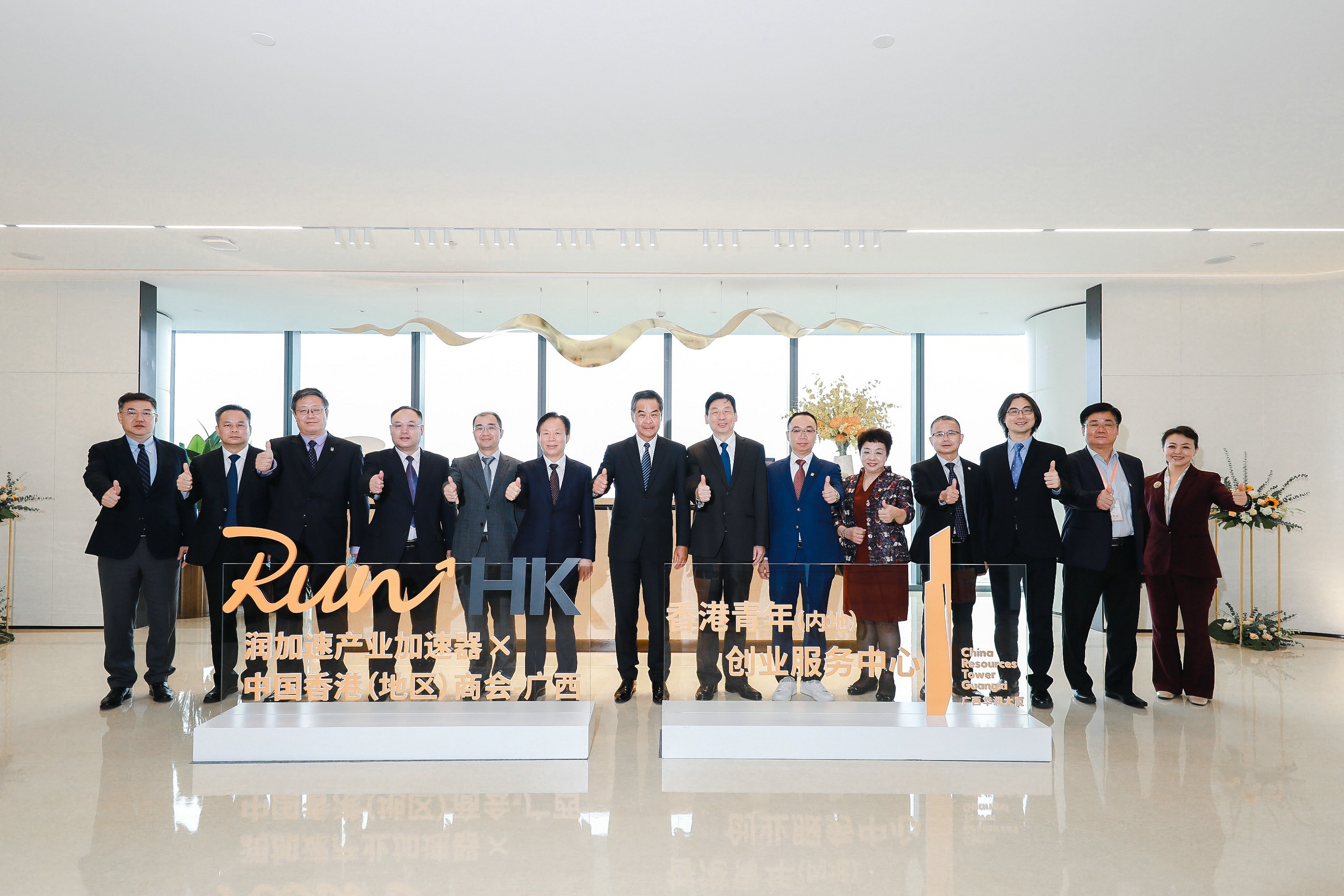 Vice Chairman CY Leung said career development of young people in Hong Kong is not only a matter of social stability but also a question of how to make good use of Hong Kong talents. As such, the Mainland should jointly provide more channels for the development of young people in Hong Kong, and at the same time help them understand the development trends so that they can seize the opportunities offered by the country, which is expected to ultimately strengthen Hong Kong youth's confidence in "one country" while creating synergy of "two systems", and encourage the younger generation to participate in the development of their country. He stated that the Run Accelerator of CR Land and HKCCC-Guangxi jointly created the RUN HK Guangxi-Hong Kong Industrial Innovation Centre and the Hong Kong Youth (Mainland) Entrepreneurship Service Centre to provide more opportunities and choices and larger career development platform for young people, helping them adapt to the development in Guangxi and contribute to Guangxi-Hong Kong industrial innovation.